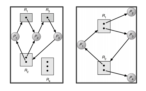 - A set of processes is in a deadlock state when every process in the set is waiting for a resource that can only be released by another process in the set