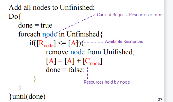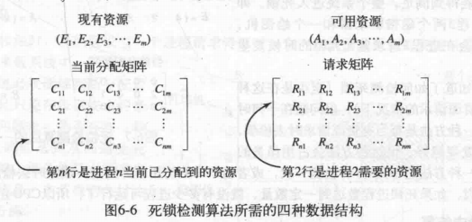 - 提供一种基于矩阵的算法来检测从\(P_1到P_n\)这n个进程中的死锁
