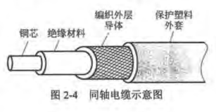 - 同轴电缆由硬的铜芯和外面包上的一层绝缘材料组成,绝缘材料的外层是一层密织的网状圆柱导体,外层导体再覆盖上一层保护塑料外套