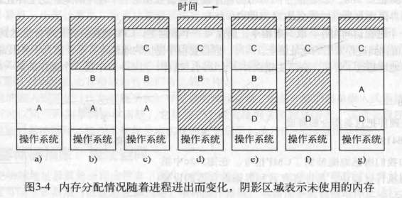 - 交换在内存中产生了多个空闲区--称为空洞(hole),这时候可以使用内存紧缩
