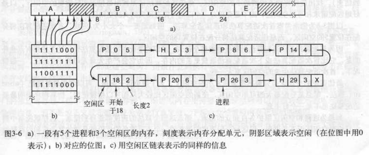 有两种方法跟踪内存使用情况:位图和空闲区链表