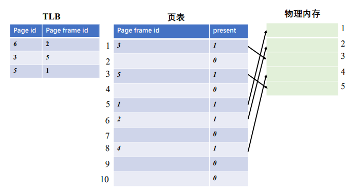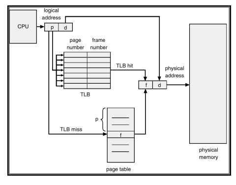 - 为计算机配备一个小型硬件设备,称为转换检测缓冲区(Translation Look-aside Buffer,TLB)或关联内存,无需使用页表即可将虚拟地址映射到物理地址。