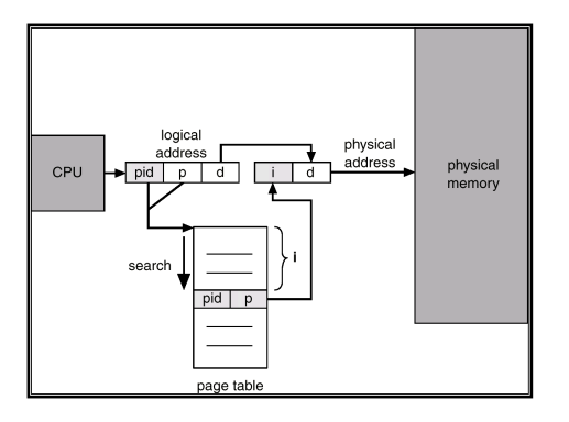 然后在反转页表中搜索匹配项。 如果找到匹配项 i,则生成物理地址 <i, offset>。