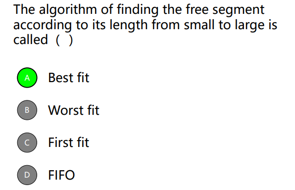 - Best fit 最佳适配:搜索整个列表并取适合的最小空洞。