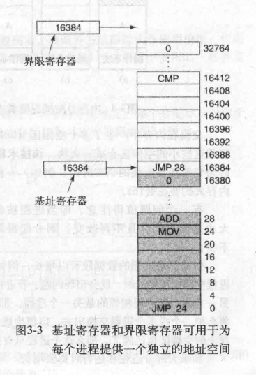 - 给每个CPU配置两个特殊硬件寄存器,基址寄存器和界限寄存器