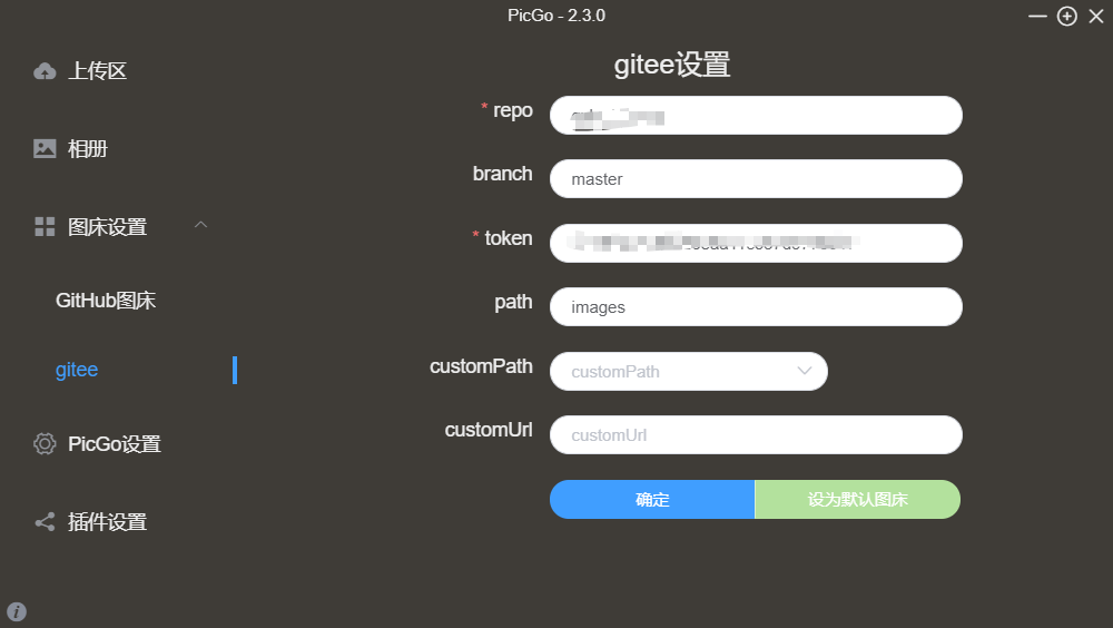 - repo:在管理中查看,填上正确的仓库名(用户名/仓库名)