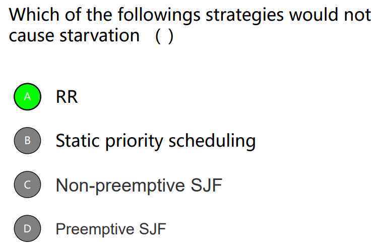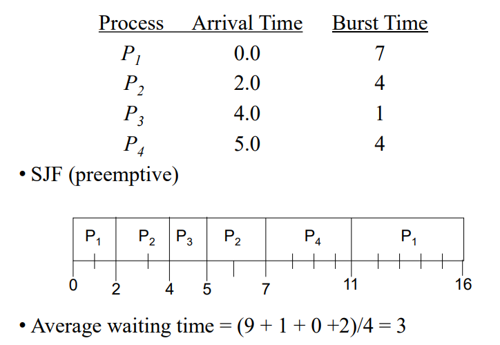 - SJF就是一种优先级调度,优先级就是预测的下一个CPU突发时间