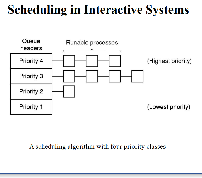 - 给每一个进程一个优先级,允许优先级最高的可运行进程先运行