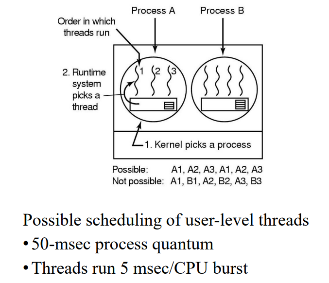 - 用户级线程可以采用特定于应用程序的线程调度器