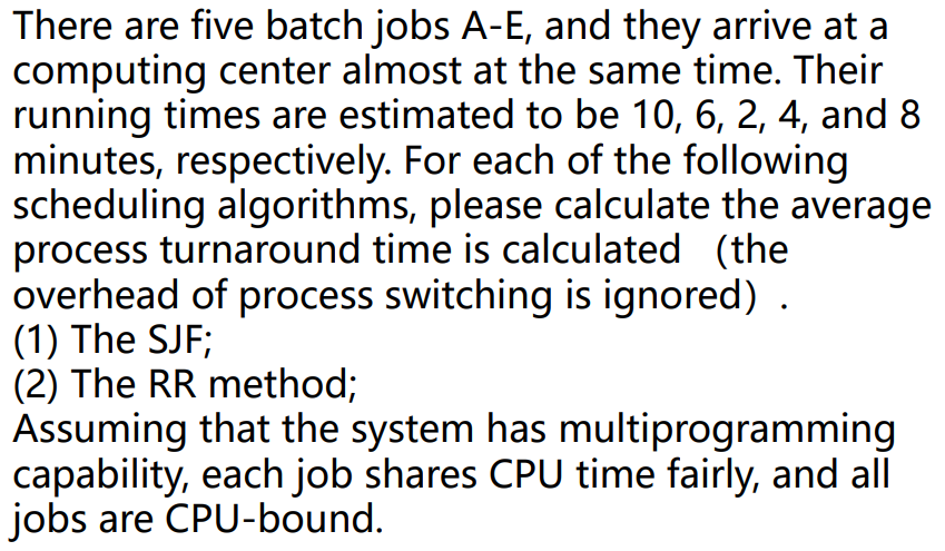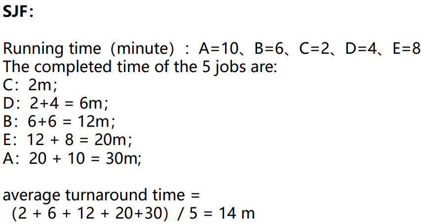 - 这一模式称为SRTF ( Shortest-Remaining-Time-First) 最短剩余时间优先