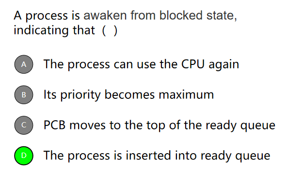 进程从阻塞状态出来后,会进入等待队列的末尾,等待进入运行状态