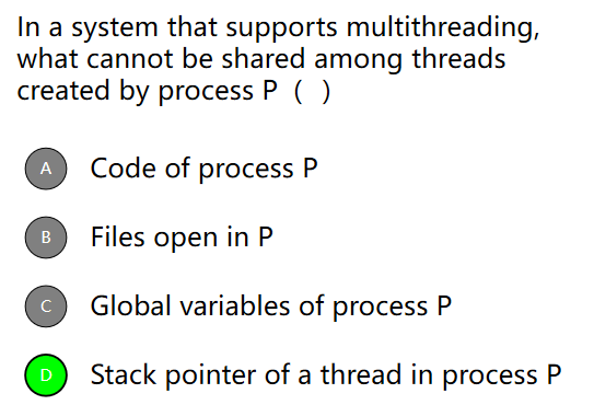 在一个进程中,一些项目被所有线程共享,一些项目对于每个线程来说是私密的