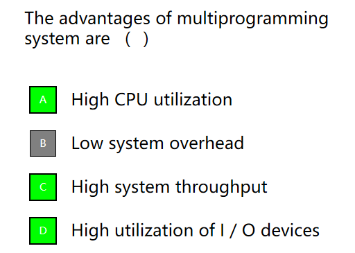 - n个进程,p概率等待 \[ CPU利用率=1 - p^n \]