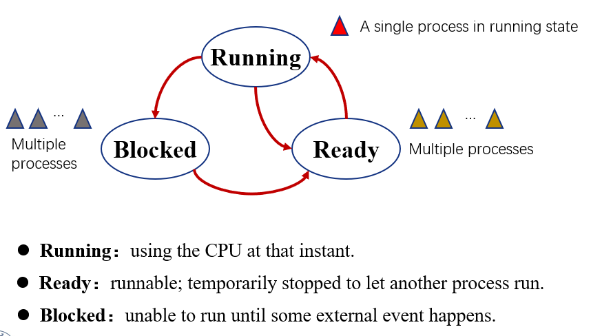 - 操作系统为每个进程维护一个进程表,其中包含一个条目(称为进程控制块